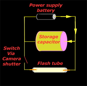 fit on top of or along side the camera,or on camera flash that are built into the top of many cameras, in that a large intensity